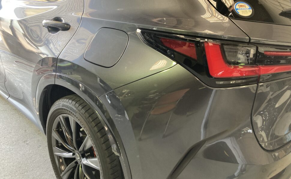 堺市東区 レクサスNX リアバンパー キズ修理 ヘコミ車修理メーカー: トヨタ 車種: レクサスNX -