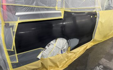 車全体をマスキングした後調色済みの塗料でペイント開始です