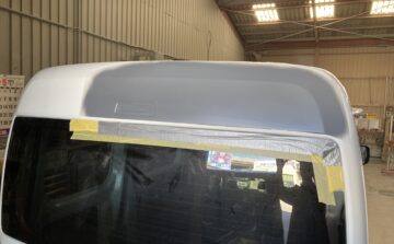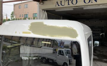堺市在住のお客様よりダイハツ ハイゼット、リアゲートのヘコミ修理のご依頼を頂きました。駐車場でぶつけてしまったとの事で車両保険を使うのはもったいないとの事で今回は鈑金(板金)修理で進めさせて頂きました。