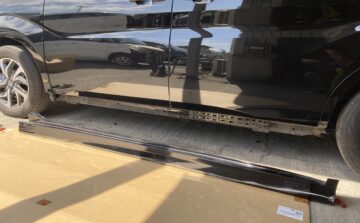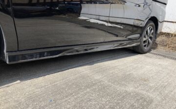 堺市堺区在住のお客様よりホンダステップワゴン、サイドスポイラーのキズヘコミ修理のご依頼を頂きました。左折時にブロックにぶつけてしまい、半分程外れたかかってました。新品パーツに交換でご提案したところご納得頂き早速作業開始です