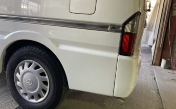 堺市在住のお客様よりマツダボンゴの左リアヘェンダー板金修理ご依頼を頂きました。リアバンパーもキズがあるので一緒にきれいにペイントします