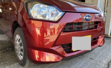 堺市在住のお客様よりスバルプレオ、フロントバンパー修理ご依頼をいただきました。今回はバンパー交換でご提案した所新品のバンパーがメーカー欠品の為納期未定との連絡を頂き現物を修理する事となりました。