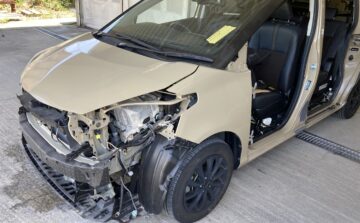 堺市在住のお客様よりトヨタシエンタ左ドア側面事故の修理ご依頼を頂きました。損傷が激しくドアは前後共に交換となり高額な修理費用となる為今回は車両保険を使っての修理となりました。