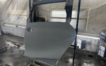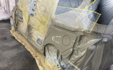 車全体をマスキングした後に調色済みの塗料でペイント開始です