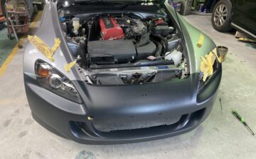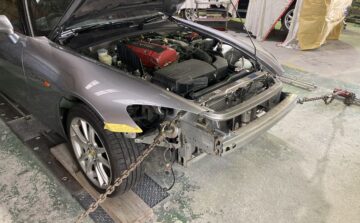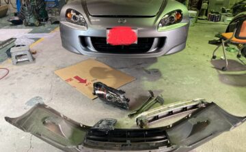 堺市在住のお客様よりホンダS2000フロント部分の事故修理のご依頼を頂きました。数年前に当店でオールペイントのご依頼を頂いたお客様で、今回は交差点での事故に合ってしまいご入庫となりました。車両保険に加入されていたので今回は保険を使っての修理となりました。