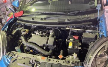 ますばボンネットを車体から取り外します。その方が作業がスムーズに進む為です。