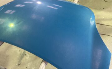 最後に綺麗に磨いてボンネットを車体に取り付けて完成です。色味も全く違和感ありません。塗装職人の腕の見せ所ですね。お客様にも大変喜んで頂きありがとうございました。他店で板金を断られた方も一度ご相談下さい。堺市を中心に河内長野市・大阪市・松原市 高石市 藤井寺市 羽曳野市 大阪狭山市 深井駅 中百舌鳥駅など周辺地域で自動車修理はAUTO ON(オートオン)にお任せ下さい!
