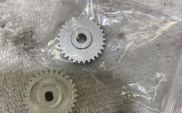 事前に調べて取り寄せた歯車です。本来純正品はこの歯車がプラスチックで出来ていますが、ネットで調べた所アマゾンなどでアルミ製の歯車があるとの事で事前に取り寄せておきました。以前ワゴンRのドアミラーを分解した所同じ様な歯車が真っ二つに割れていた事がありました。メーカーさんもここは丈夫な素材で作って欲しいですね。