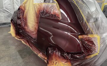 純正カラーに配合した塗料でペイントします。ムラ無く綺麗に職人技が光りますね。