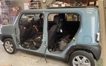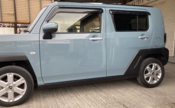 堺市在住のお客様よりダイハツ タフト左側面事故修理のご依頼を頂きました。以前にも当店をご利用頂いたお客様からのご依頼でした。左折時にポールに気づかずに巻き込んでしまったとの事です。前回は鈑金(板金)修理で可能なレベルでしたが今回はドアパネルの交換となってしまいました。