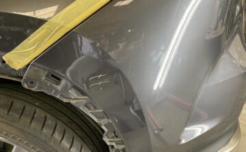 堺市東区 レクサスNX リアバンパー キズ修理 ヘコミ車修理