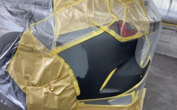 車全体をマスキングした後に調色済みの塗料でペイント開始です