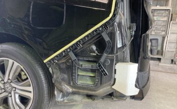 堺市在住のお客様よりホンダステップワゴン、左リアバンパーすり傷ヘコミ修理のご依頼を頂きました。