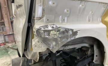 まずはバンパーなとのパーツを取り外し鈑金(板金)していきます。かなり手強いですね!