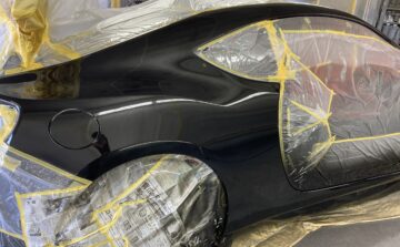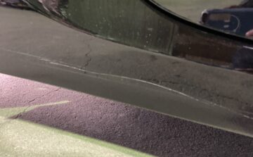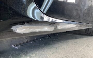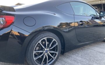 大阪市在住のお客様よりスバルBRZの右側面ヘコミキズのご依頼を頂きました。何度か当店をご利用頂いているお客様です。今回は知らない間に凹んでいたとの事ですが、キズを見ると恐らく自転車かバイクにぶつけられた様なヘコミでした。