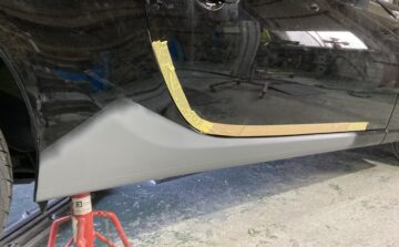 板金がおわれば下地のサフェーサーを塗装します