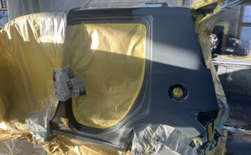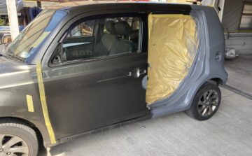 車全体をマスキングした後調色済みの塗料でペイント開始です