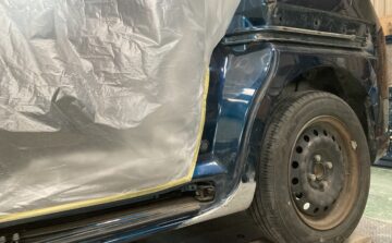 スライドドアは交換の為にまず取り外しリアフェンダーは鈑金(板金)修理で進めます