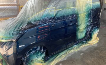 車全体をマスキングした後調色済みの塗料でペイント開始です