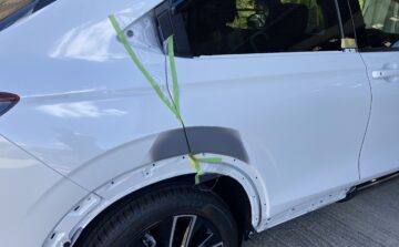 高石市在住のお客様よりホンダヴェゼル右リアフェンダー、リアドアキズヘコミ部修理のご依頼を頂きました。