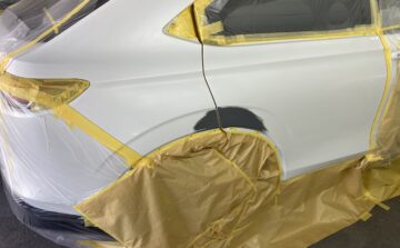 車全体をマスキングした後は調色済みの塗料でペイント開始です。