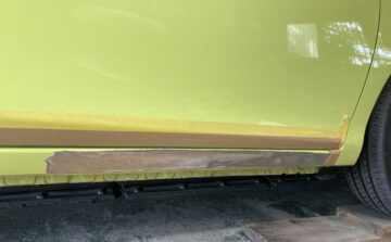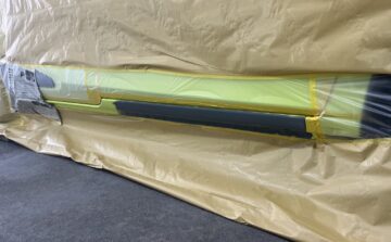 車全体をマスキングした後調色済みの塗料でペイント開始です